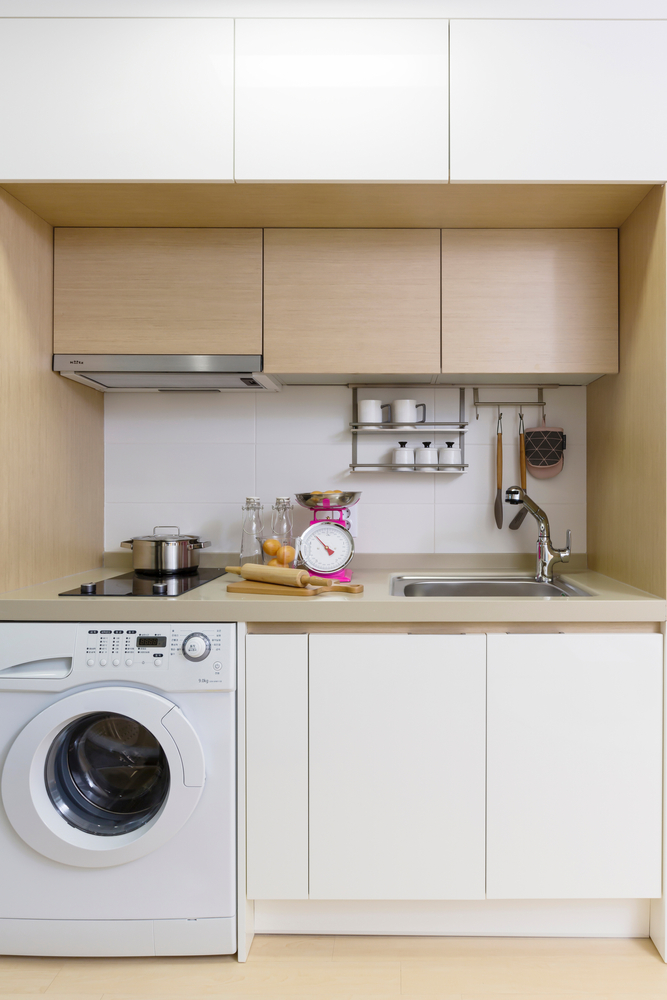 A washing machine top is used to create a separate folding and sorting area. We recommend materials like quartz or laminate, which are water-resistant for durability. Also, in many Indian homes, this surface is used to store laundry items in jars or baskets, which gives a clean look.